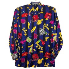 Johnston & Murphy XC4 Hemd Herren M blau Knopfleiste Drohnen Flugzeuge AOP Flip Cuff