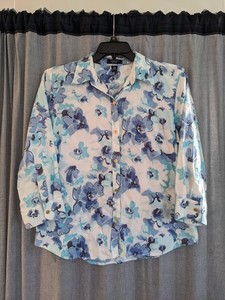 Chaps Top Damen XL blau weiß geblümt 3/4 Arm Büro Business Wear Freizeit