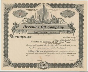 Hercules Oil Company Aktienzertifikat Galveston Texas