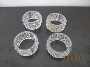 Vintage Klarglas Runde Serviettenringe Halter Diamant Abgeschrägt 4er Set EUC