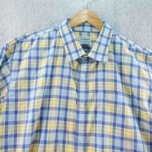 LL Bean Herren XXL Regular Traditional Fit Karo Button Down Hemd Blau Gelb CHF 17,95Bisher: CHF 18,90