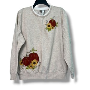 Alfred Dunner bestickter Kürbis Damen Large hellbraun Sweatshirt
