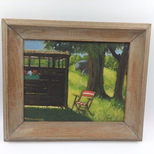 Vintage original acrylic painting by Wollmar summer scene pastoral