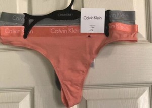 Calvin Klein Tangas Höschen Damen klein 2 Paar (pfirsich & grau) dickes Band neu mit Etikett CHF 22,62