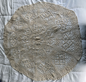 Antikes 40er Jahre gehäkeltes Deckchen großer Kreis Tischplatte 36" Durchmesser elfenbeinfarben
