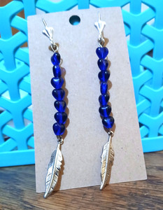 Lapizlazuli Herzen mit Silber Feder Ohrringe (durchbohrt)