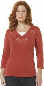 Women's Casual Long Sleeve Layered-Look Henley Floral T-Shirt OFFER only 3 days