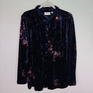 Belle by Kim Gravel Top Damen XL Samt dunkel geblümt stimmungsvolle Tunika Bluse blau