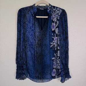 Elie Tahari Top Damen kleine Schlangenleder Blumen Struktur fließend Bluse Seidenmischung