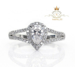 Moissanite Halo Engagement Ring Solid 14K White Gold 2.45 CT Excellent Pear Cut
