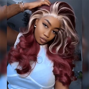 Lange Körperwelle Lace Front Perücke Burgunderrot Highlight Blond Echthaarperücke Remy
