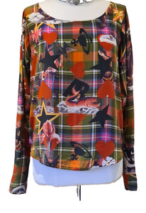 Vivienne Westwood Top schwarz schimmernd drapiert Wasserfallausschnitt Party Bluse Gr. M UK 12 CHF 186,05