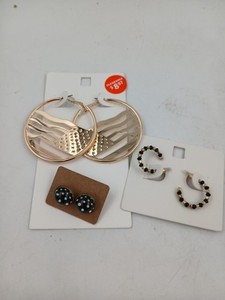 Set 3 Paar Damen Ohrringe Gold Flagge Creolen schwarz Perlen Creolen gepunktet Ohrstecker