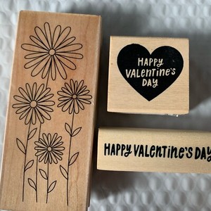 3er Set Holzbriefmarken Valentinstag und Blumen