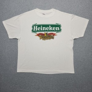 VINTAGE Heineken Bier Shirt XL weiß großes Logo Einzelnaht Alkohol USA Made