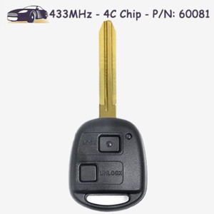 Remote Car Key Fob 2 Button 433MHz 4C Chip 60081 for Toyota RAV4 Corolla Yaris