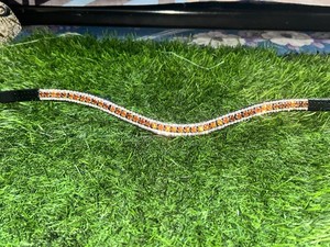 orange geschwungener Topas diamanté Kristalle gepolstert Leder Pferd Stirnband schwarz Größe A CHF 17,47