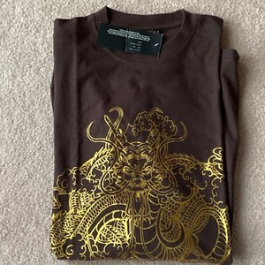 NEU MIT ETIKETT GODBODY DENIM LANGARM HERRENHEMD, 2XL, BRAUN, GOLD DESIGN AUF DER VORDERSEITE CHF 18,30