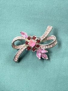 Vintage Brosche Anstecknadel silberfarben rosa Strass Schleife wunderschön Nachlass Schmuck L1 CHF 11,90