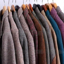 Mr Harry Tailored In England Tweed Mantel Herren 42 L ~ grau Fischgrät Wolle