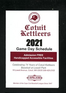 Cotuit Kettleers--2021 Pocket Schedule--Mycock Insurance--Cape Cod League