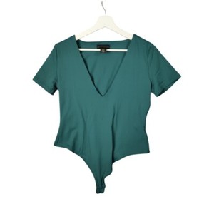 House of Harlow 1960 Body tiefer V-Ausschnitt Kurzarm Tanga Druckknopf grün Damen XL