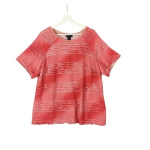 B COLLECTION BOBEAU Damen Top Übergröße 2X koralle weiß gestreift Flatter Kurzarm