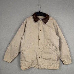 Woolrich Jacke Herren Medium hellbraun Canvas Lederkragen Wolle gefüttert Made USA CHF 30,18CHF 40,24