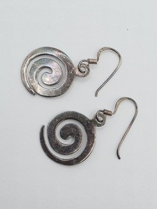 Vintage gepunzt MC Flachspirale 15mm Tropfen Ohrhänger Haken Ohrringe 925 Sterling