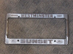 Vintage Westminster Sunset Ford America First License Plate Frame Embossed Rare