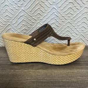UGG Zamora braun & hellbraun Keilsandale Größe 7 Wildleder Weidenriemen Frühling Sommer Schuh