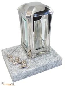 Grablaterne aus Edelstahl montiert auf einem Granitsockel, Grablampe, Grablicht