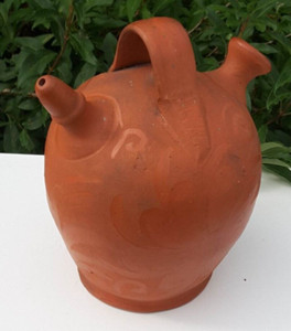 Gargoulette Cruchon en terre cuite décor fleurs chevrette
