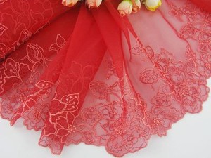 6.5"*2yard delicate red embroidered flower tulle lace trim DIY 0351