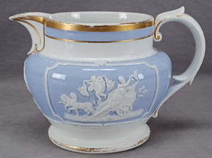 Job Ridgway Streitwagen Sprigged blau weiß & gold Bone China Krug um 1808-1814