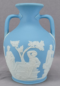 Antike Wedgwood blau & weiß Jasperware neoklassizistische Portland 7 1/4 Zoll Vase