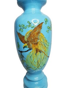 Handbemalte glasierte Keramik Lampe Vogel Kunstkeramik Lampe kräftig blau Vintage