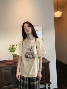 Baumwolle Kontrast Buchstaben Stickerei Kurzarm T-Shirt Sommer Little Chap Loos CHF 6,38 bis CHF 7,98