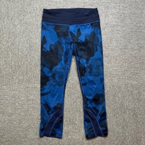 Lululemon Speed Crop Legging in Jumbo blau geblümt & schwarz Größe 4 - Mid-Rise