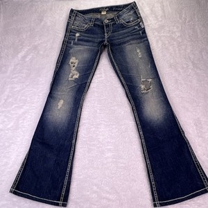 Silver Jeans Damen 27 Frances Boot Flare Stitched Dark Wash Stretch Distressed