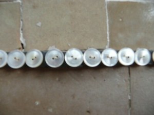 plaque de 24 boutons anciens en nacre irisé jaune clair
