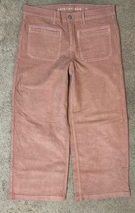American Eagle Damen Gr. 10 Low Rise Baggy Wide Leg Rosa Cord Jeans