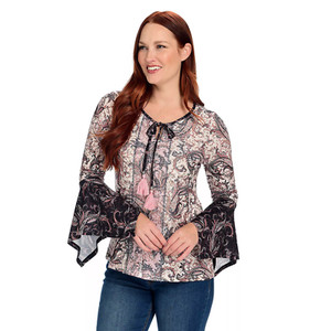 Marc Bouwer Spitze lang Glockenärmel V-Ausschnitt Schlüsselloch hinten gerafft Top neu ohne Etikett CHF 6,36CHF 15,89