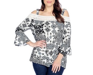 NEU One World Netz Strick kurze Flatterärmel Schlüsselloch Tie-Neck gesmokte Tunika CHF 4,76CHF 11,91