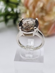 Massiver Silber Rauchquarz Statement Ring. J1/2 (kleiner/rosa Ring)