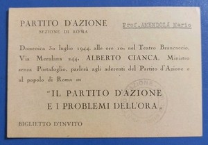 1944 biglietto invito del Ministro Cianca - Partito d'Azione - sezione di Roma