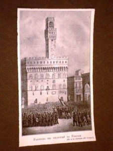 Rara stampa dei primi del 1900 Risorgimento Firenze Partenza volontari Garibaldi