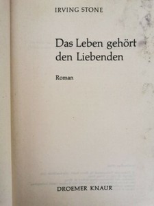 Das Leben Gehort den Liebenden von Irving Stone, 1967, Droemer Knaur- ER
