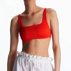 COS Geripptes Bikini-Top mit eckigem Ausschnitt Rot Größe 10