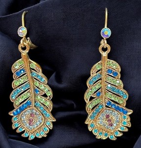 Kirks Folly Pfauenfeder 2" Kristalle baumelnde Ohrringe mit Hebelverschluss goldfarben